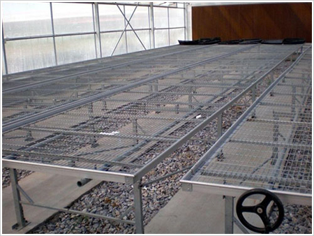 移动苗床标准高度0.7m,可以进行微调,标准宽1.7m,也可以根据温室宽度定制,长度可根据用户要求定做;苗床网一般采用钢丝焊接,再进行热浸镀锌处理,防腐性能高,承重能力好,寿命长;网格一般为130x25mm或130x30mm。
